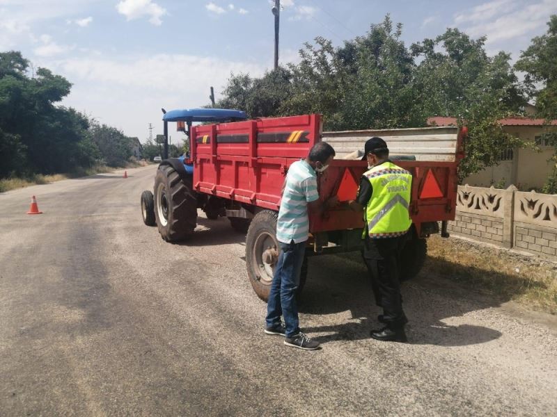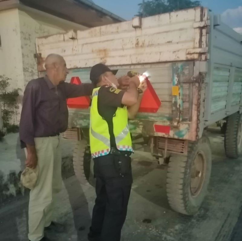 Elazığ’da hasat mevsiminin başlamasıyla birlikte jandarma ekipleri, traktör römorklarına reflektör takmaya başlayarak uyarıda bulundu.