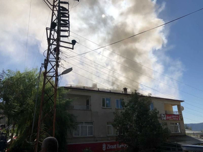 Elazığ’ın Arıcak ilçesinde 3 katlı bir binanın çatısında yangın çıktı. İtfaiye ekiplerinin müdahalesi ile kontrol altına alınan yangında, soğutma çalışmaları sürüyor.