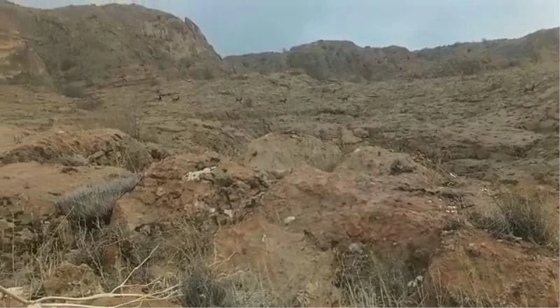 Sürü halinde yiyecek arayan dağ keçileri daha sonra hızla dağların zirvesine çıkarak gözlerden kayboldu.