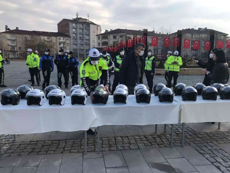 Elazığ’da yaşanan kazalarda ölüm ve yaralanma oranlarını en aza indirmek amacıyla motosiklet sürücülerine ücretsiz kask dağıtıldı.