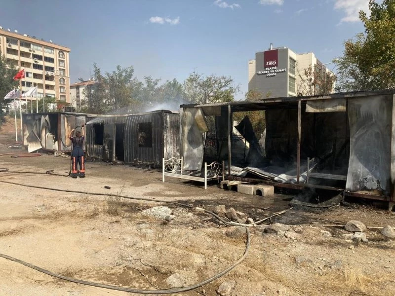 Elazığ’da okul şantiyesinde çıkan yangında konteynerler küle döndü