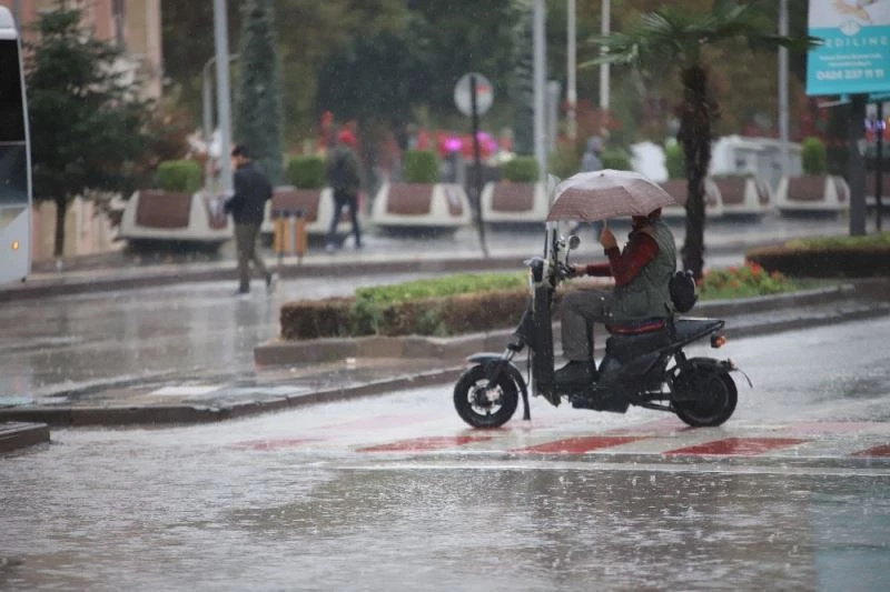 Meteoroloji’nin uyardığı kuvvetli yağış Elazığ’da etkili oluyor. Kentte ara ara devam eden sağanak yağış, sabah saatlerinde şiddetini arttırdı. Yoğun yağış nedeniyle bazı noktalarda su birikintileri oluşurken, sürücüler yollarda temkinli seyretmeye çalıştı. Şemsiyesi olan vatandaşlar ıslanmaktan kurtulurken, hazırlıksız olan bazı vatandaşlar da ıslandı.