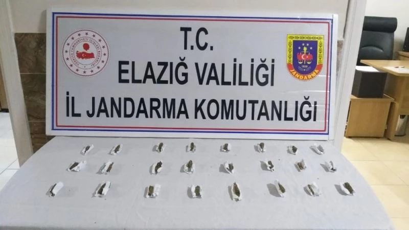 Elazığ’da jandarma tarafından yapılan çalışmada, 24 içimlik paket halinde esrar maddesi ele geçirilirken bir şüpheli gözaltına alındı.