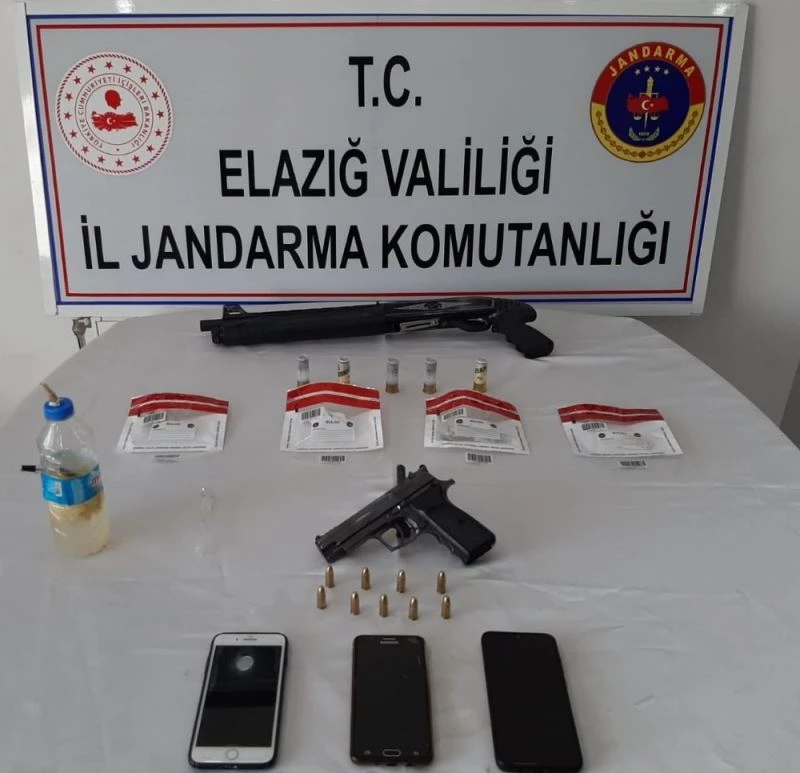 Edinilen bilgiye göre, İl Jandarma Komutanlığı tarafından uyuşturucu ile mücadele kapsamında çalışma yapıldı. Jandarmanın yaptığı çalışmada il merkezi ve Palu ilçesinde 4 farklı adres belirlendi. Adreslere yapılan eş zamanlı operasyonda 3 şüpheli yakalanarak gözaltına alındı.Adreslerde yapılan aramada çeşitli miktarlarda metamfetamin ve esrarla birlikte 5 adet uyuşturucu kullanma aparatı,1 adet ruhsatsız tabanca, 1 adet pompalı tüfek ve mermileri ele geçirildi.