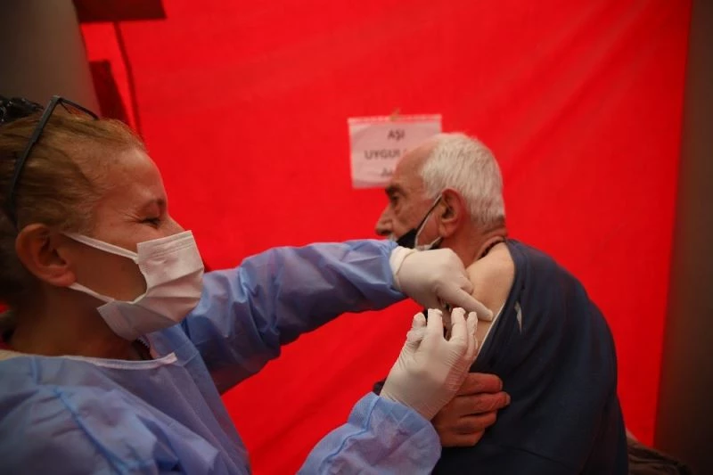 Elazığ’ 65 yaş üstü vatandaşların Koronavirüs (Covid-19) aşısı olması için meydana çadır kurularak hizmet vermeye başladı.