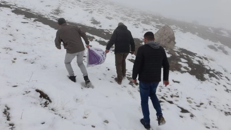 Elazığ’da kış mevsimi nedeniyle yüksek rakımlı bölgelere yaban hayvanları için 300 kilogram yem bırakıldı.