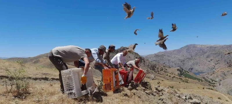 Elazığ’da yüzlerce kınalı keklik ekipler tarafından Kovancılar ilçesinde doğaya salındı.