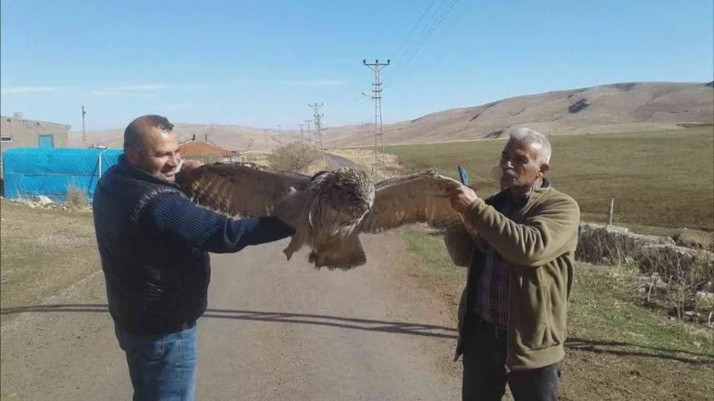 Sivas’ta avlandığı sırada elektrik tellerine takılan dev baykuş akıma kapılarak telef oldu.