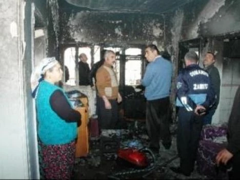 OSMANİYE - Osmaniye?de iki katlı evin ikinci katında meydana gelen yangında, ev içerisindeki eşyalar kullanılmaz hale geldi.Esenevler Mahallesi 15545 Sokak`ta aile, iki katlı evinde damında asma budarken evi bir anda alevler sardı. Evden dumanların yükseldiğini fark eden ev sahibi Ali Akyol?un büyük oğlu Mehmet Akyol hemen itfaiye ekiplerine haber verdi. Olay yerine gelen polis ekipleri çevre güvenliğini alırken, TEDAŞ ekipleri elektriği kesti. Osmaniye Belediyesi`ne ait itfaiye ekipleri alevleri söndürdü.Ev sahibi Ali Akyol, yangının nasıl çıktığını kendisinin de hiç anlamadığını, bir anda evi alevlerin sardığını söyledi. Ev içerisinde inceleme yapan itfaiye ekipleri yangının, elektrik kontağından çıkmış olabileceğini bildirdi.
