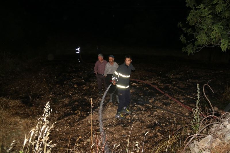 Kışlak Mahallesi’nde akşam saatlerinde elektrik tellerinin birbirine çarpması sonucu çıkan kıvılcımlar yangına neden oldu. 2 dekarlık ekili buğday tarlasının yandığını gören mahalleli, Hatay Büyükşehir Belediye itfaiye ekiplerine haber verdi. Kısa sürede olay yerine gelen Hatay Büyükşehir Belediyesi itfaiye ekipleri, vatandaşlarında yardımlarıyla kısa sürede yangını kontrol altına alarak söndürdü. Yangında 2 dekarlık buğday tarlasının zarar gördüğü belirtildi.
