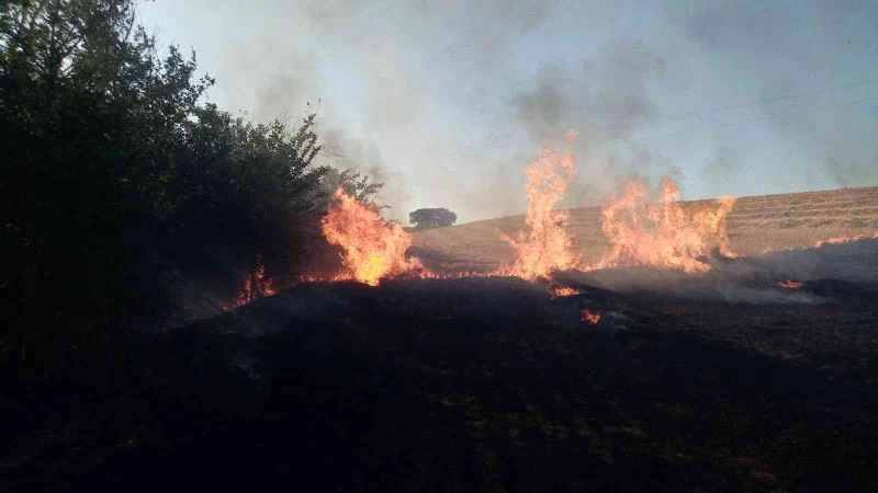 Elektrik tellerinden sıçrayan kıvılcım 100 dönüm anızı küle çevirdi