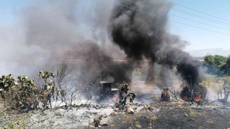Yangının söndürülerek soğutma çalışması yapılmasının ardından boş arazide bulunan Remzi Kösten isimli vatandaşa ait tarım aletleri patoz ve ilaç makinesi tamamen yanarak kullanılamaz hale geldi. Vatandaşlar, patlama sesiyle birlikte ateş sıçradığını, kurumuş ot ve çalıların birden tutuştuğunu anlattı.