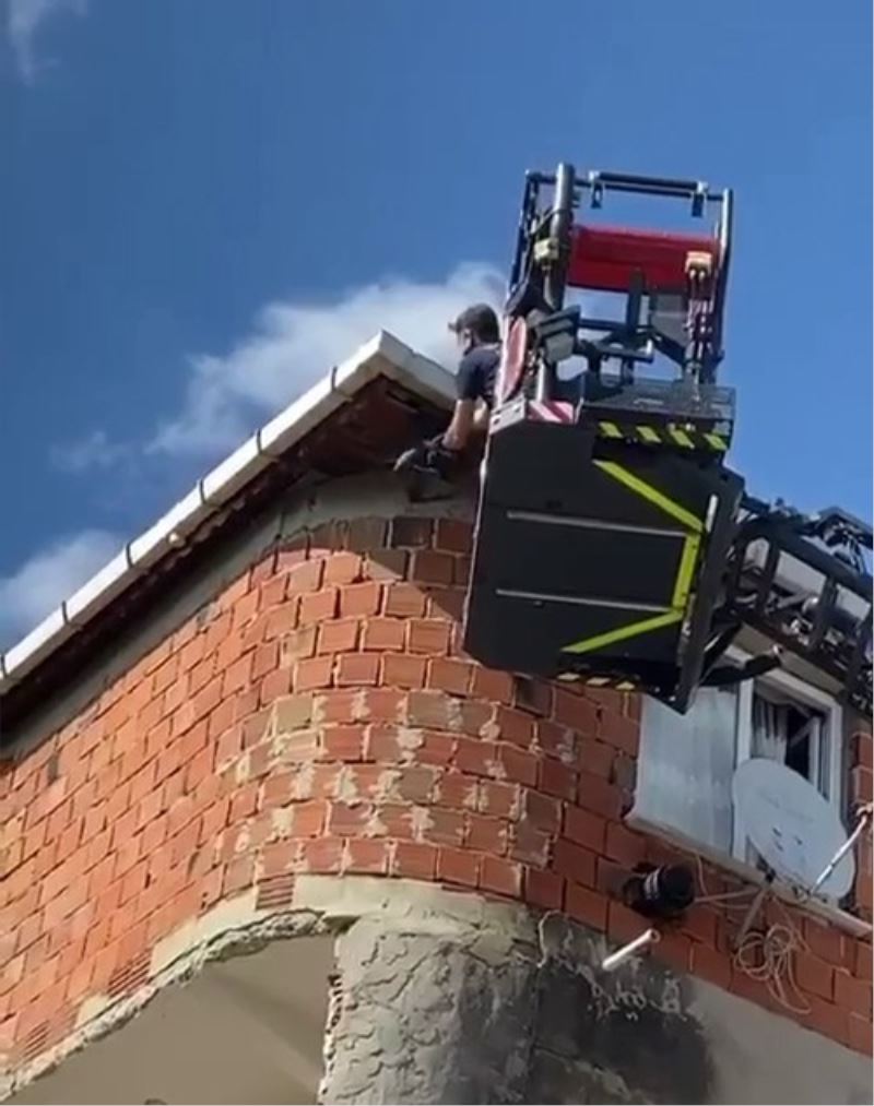 Arnavutköy’de bir binanın çatısında bulunan elektrik tellerine takılan kargayı itfaiye ekipleri kurtardı.