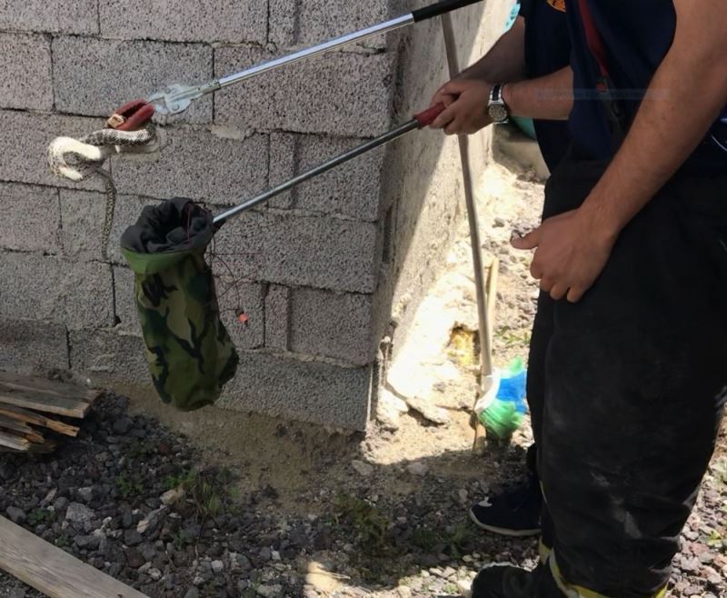 Elektrik üretim tesisindeki yılanı itfaiye yakalayıp doğaya bıraktı