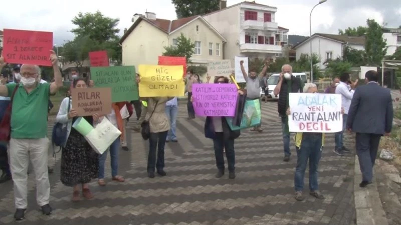 İstanbul Büyükşehir Belediye Başkanı Ekrem İmamoğlu açılış yapmak için Büyükada’ya geldi. Adalar Belediyesi’ne girişi sırasında atların adalarda kalmasını isteyen vatandaşlar İmamoğlu’nu protesto etti. ‘Atlar adalarda yaşasın’, ‘her şey hiç güzel olmadı’ ve ‘tarih sizi adanın ve atların sonunu getiren başkan olarak hatırlar’ yazılı pankartlar açıldı. Belediye binasını ziyaret eden İmamoğlu’na Adalar Belediye Başkanı Erdem Gül, eşlik etti. Ardından İmamoğlu, yapılacağı elektrikli araçların bulunduğu alana geldi.