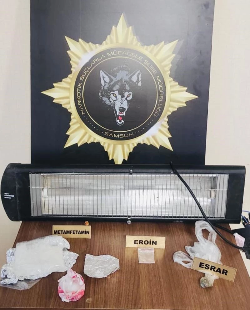 Edinilen bilgiye göre, Samsun Cumhuriyet Başsavcılığı koordinesinde uyuşturucu ile mücadele kapsamında çalışma yapan Samsun Emniyet Müdürlüğü Narkotik Suçlarla Mücadele Şube Müdürlüğü ekipleri, İstanbul’dan Samsun’a uyuşturucu madde getirileceği istihbaratı üzerine Y.C. isimli şahsın sevk ve idaresindeki otomobili Samsun girişinde durdurdu. Araçta yapılan aramada elektrikli ısıtıcı içine gizlenmiş 3 paket halinde toplam 97,53 gram metamfetamin, 2,55 gram eroin ve 1,33 gram esrar ele geçirildi. Olayla ilgili Y.C. gözaltına alındı.