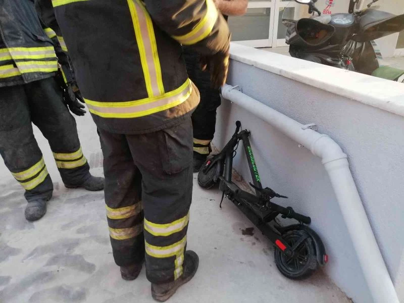 İhbar üzerine olay yerine gelen ekipler, aküsünden yanmaya başlayan scooteri söndürerek apartmanın dışına çıkarttı.
