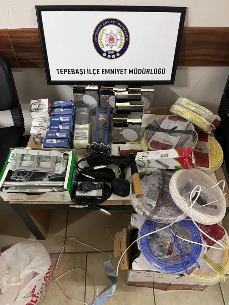 Eskişehir İl Emniyet Müdürlüğü Tepebaşı İlçe Emniyet Müdürlüğünce şüphelilere yönelik yapılan uygulamalar neticesinde, D.Ü. ve H.M. isimli şahısların bir aracın kasasına çok miktarda malzeme yüklediği fark edildi. Yüklenen malzemeler incelendiğinde; elektrik ve internet kabloları, led aydınlatma ışıkları ve spot lambalar ile mikrofon, ses dağıtım kabloları, priz duyları ve benzeri elektronik malzemelerin çalıntı olduğu anlaşıldı. Polis ekiplerince gözaltına alınan şüpheliler, işlemlerinin ardından adliyeye sevk edildi.