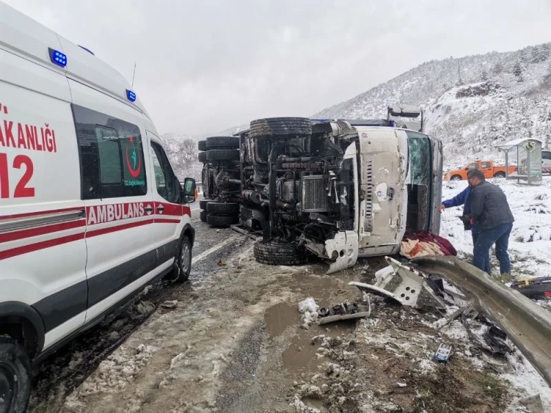 Alınan bilgilere göre Bilecik’in Bozüyük ilçesinden kent merkezine seyir halindeki 32 EZ 068 plakalı tırın sürücü Orhan Toprak (48), Kurtköy kavşağında aracın direksiyon hakimiyetini kaybetti. Kontrolden çıkan tır yolun sağ tarafına devrilirken, şans eseri yanından başka bir aracın geçmemesi olası bir faciayı önledi. Araç dorsesindeki meyveler yol ve çevresine saçılırken, kazada araç içinde sıkışan sürücü, Bilecik AFAD ekipleri tarafından kurtarıldı ve olay yerine gelen 112 Acil Servis ekiplerince yapılan ilk müdahalenin ardından Bilecik Tıp Fakültesi Eğitim ve Araştırma Hastanesine kaldırıldı.