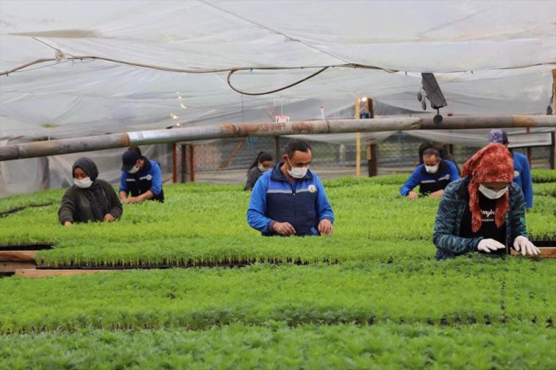 Park ve Bahçeler Müdürlüğü tarafından ocak ayından itibaren kurulan serada peyzaj ve süs bitkileri yetiştirildiğini anlatan Öztürk, şunları ifade etti: