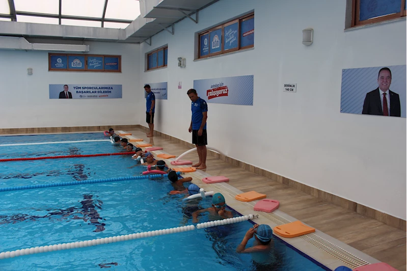 Belediyeden yapılan açıklamaya göre, Elmalı'daki Muhammed Hamdi Yazır Kültür Merkezindeki yüzme havuzunda açılan yüzme kursuna, çok sayıda çocuk katıldı.