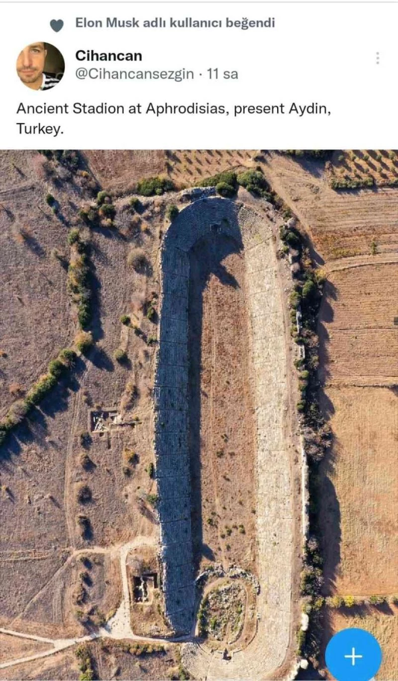 Tesla ve SpaceX’in kurucusu Elon Musk bir sosyal medya kullanıcısı tarafından paylaşılan Karacasu’da bulunan UNESCO Dünya Mirası Listesi’nde yer alan Afrodisias Antik Kenti içerisinde bulunan stadyumun fotoğrafını beğendi. Musk’ın bu beğenisi Karacasu halkını heyecanlandırdı.