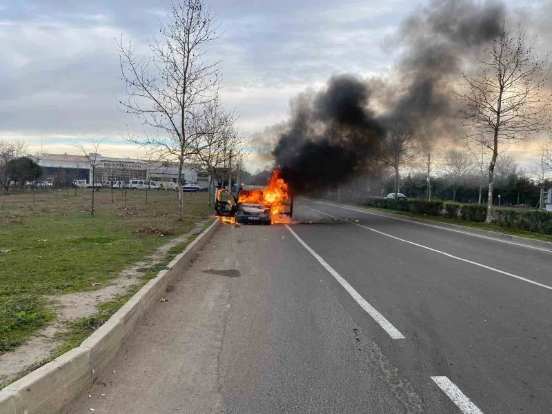 Tekirdağ Çorlu’da bir vatandaşın, hastaneye gitmek için emanet aldığı araba alev topuna döndü. Yanan araç hurda hurda yığınına döndü.