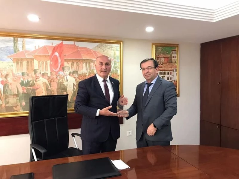 Safranbolu Emek Ortaokulu Müdürü Yüksel Yıldız beraberindeki heyet ile birlikte İl Genel Meclis Başkanı Ahmet Sözen’e hayırlı olsun ziyaretinde bulunarak plaket takdim etti.