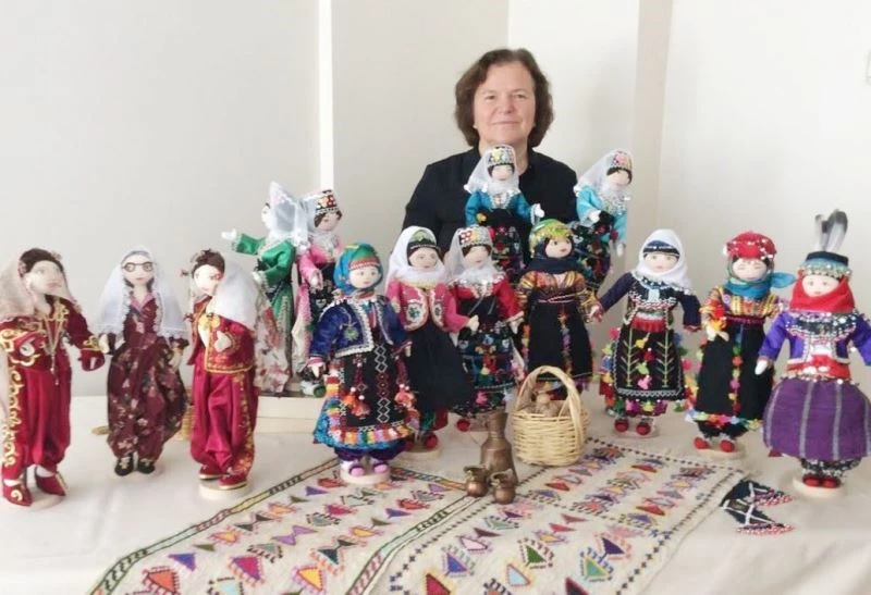 Eröz, Tavşanlı, Domaniç ve Simav’ın dağ köylerindeki kıyafetleri, araştırıp diktiği bez bebeklere uyarladı.