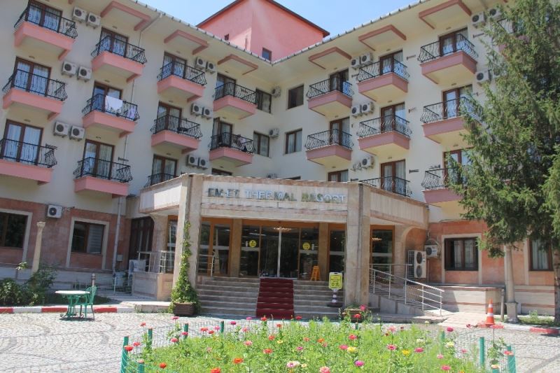 Tesise girişte temassız ateş ölçümü yapıldığını belirten Sezer, ’’Yemek ve toplantı salonları ile lobi ve resepsiyon alanının sosyal mesafe planına uygun olarak düzenlendi. Yer işaretleri ve uyarıcı tabela ve yazılarla sosyal mesafe ve hijyen uyarıları yapıldı. Otel bünyesindeki tüm departman çalışanlarımıza hijyen ve dezenfeksiyon ile sosyal mesafe konusunda etkin çalışma yürütmeleri konusunda eğitimler verildi. Odalardaki ve diğer kapalı ünitelerdeki pencereler günlük temizlik ve dezenfektasyon sırasında açılarak temizlik sonrasında en az bir saat havalandırılıyor. Eğitimli ve hijyen sertifikalı personellerimiz maske ve eldiven giyerek temizlik ve dezenfekte işlemlerini yapıyor. Kurban Bayramı yaklaşırken yüzde 65 doluluk oranını yakalamış durumdayız. Bayrama kadar yüzde 80 doluluk oranını hedefliyoruz. Bütün misafirlerimizi güvenli bir tatil için Emet Termal Otel’e bekliyoruz’’ dedi.