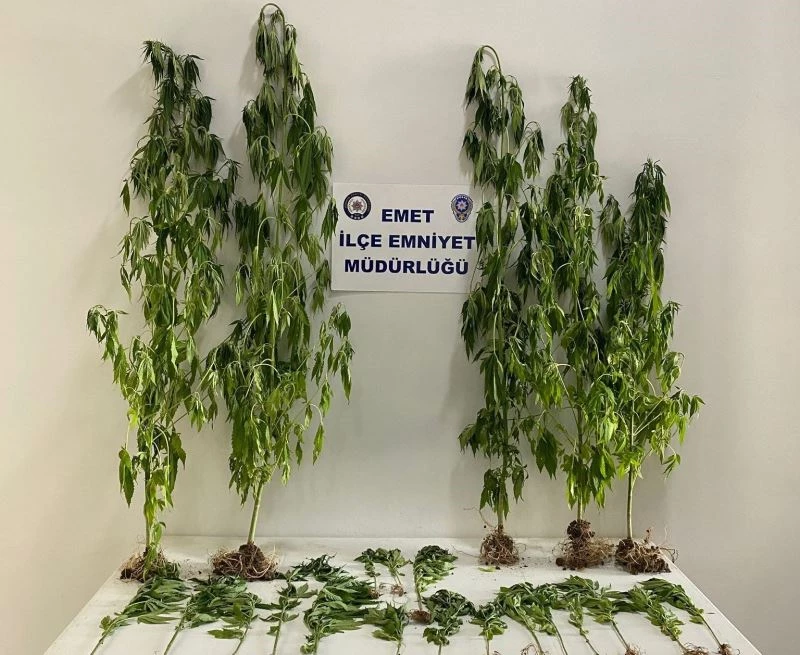 Kütahya’nın Emet ilçesinde polisin düzenlediği operasyonda bir evin bahçesinde 22 kök Hint keneviri ele geçirildi.