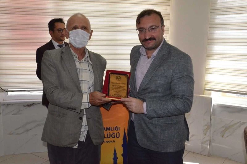Programda Diyanetten emekli olan İsa Karga, Mehmet Özkal, Mustafa Ak, Yunus Altın, Habib Atasever, Osman Korkmaz’a Kaymakam Hasan Çiçek, Belediye Başkanı Hüseyin Doğan, Müftü İsmail Çınar, Başkan Yardımcıları Murat Uyanık ve Süleyman Sami Demirsöz tarafından plaket takdim edildi.