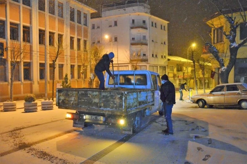 Kütahya’nın Emet ilçesinde akşam saatlerinde başlayan kar yağışıyla birlikte karla mücadele ekipleri aralıksız çalışmaya başladı.