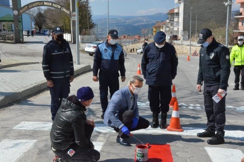 Emet Kaymakamı Hasan Çiçek, ’’Yayalar Kırmızı Çizgimiz’’ sloganı ile başlatılan farkındalık çalışması kapsamında yaya geçidi boyama etkinliğine katılıp, yaya geçidi boyadı. Kaymakam Çiçek’e Emet İlçe Emniyet Müdür Vekili İsmail Aşıkovalı ve İlçe Jandarma Komutanlığı Vekili Erdal Ercan eşlik etti.