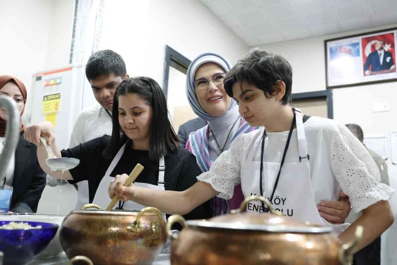 Özel eğitime ihtiyacı olan 18 yaş üstü yetişkin bireyler için açılan "Feneryolu Özel Yürekler Halk Eğitimi Merkezi"ni ziyaretinde Emine Erdoğan’a Milli Eğitim Bakanı Mahmut Özer de eşlik etti. İlk olarak yiyecek-içecek atölyesine uğrayan Erdoğan, hafif düzey zihinsel engelli öğrencilerin şeflerinden yaptıkları çalışmalarla ilgili bilgi aldı. Erdoğan, sohbet ettiği öğrencilerin hazırladığı soğuk ayran aşı çorbasını da tattı. Buradan hafif otizm tanılı öğrencilerin spor ve fiziksel aktivitelerde bulunduğu alana gelen Erdoğan, masa tenisi oynayan öğrencileri izledi. Erdoğan, masa tenisindeki başarılarından dolayı öğrencileri tebrik etti.
