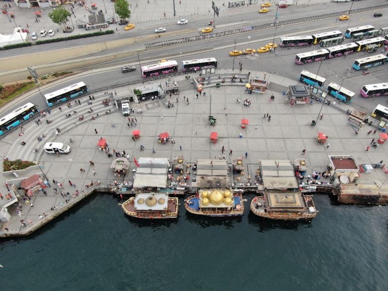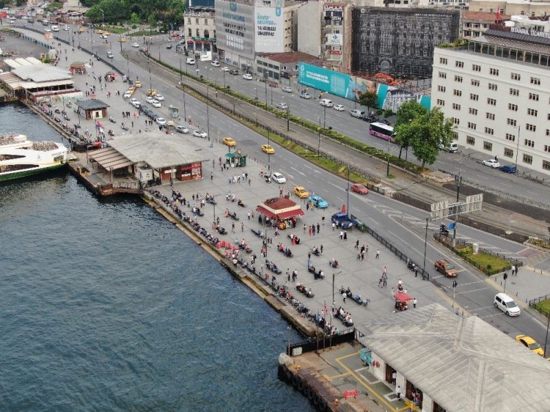 Yeni tip korona virüs ile mücadele kapsamında normalleşme sürecine girilmesinin ardından hafta sonunu ve sıcak havayı fırsat bilen vatandaşlar, Eminönü’ne akın etti. Galata Köprüsü’nde yoğunluk oluşturan vatandaşlar hem maske takmayı hem de sosyal mesafe kuralına uymayı unuttu. Normalleşme ile virüsü unutan vatandaşlar adeta canlarını hiçe saydı. Galata Köprüsü’nde vatandaşların balık tuttuğu görüldü. Öte yandan otobüs duraklarında araçların oluşturduğu yoğunluk da dikkat çekti.