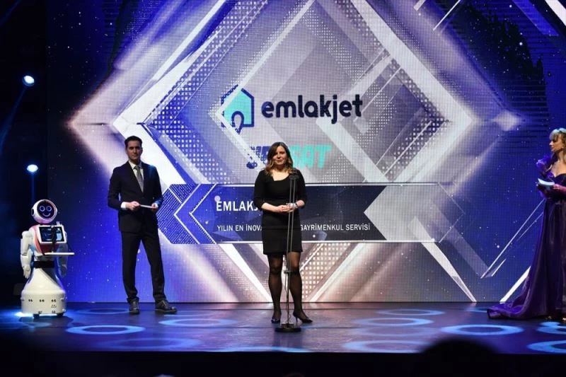 Türkiye'de ilk kez robotlar tarafından ödüllerin sunulduğu gecede, Emlakjet'in "acil nakit ihtiyacı olan ve evini satmak isteyen ev sahipleri" için sunduğu çözümü Jetsat, "En İnovatif Dijital Gayrimenkul Servisi" ödülüne layık görüldü. Ödülü, Emlakjet Pazarlama Direktörü Simgül Madanoğlu aldı.