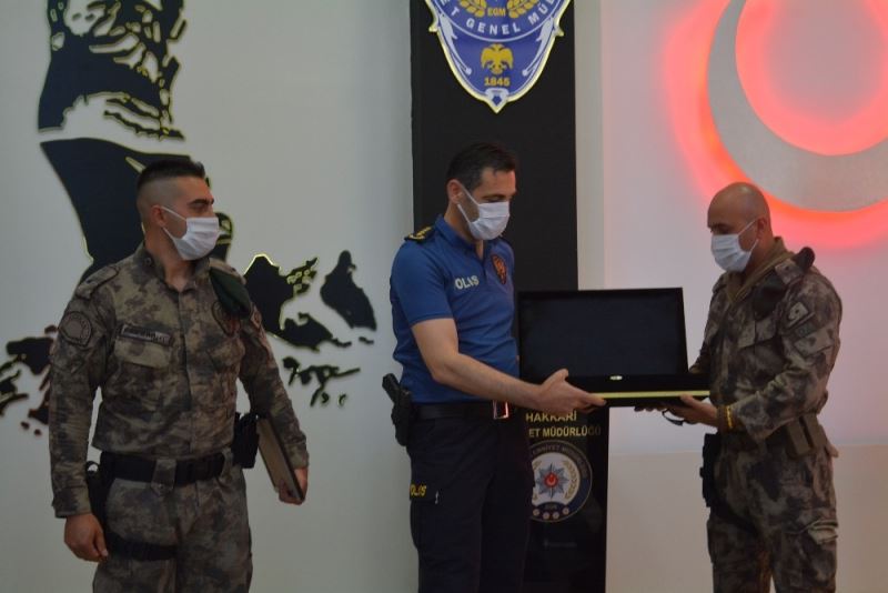Hakkari İl Emniyet Müdürü Atanur Aydın, 15 Temmuz hain darbe girişiminde Ankara Gölbaşı’na yapılan saldırıda gazi olan komiser yardımcılarını makamında kabul etti.