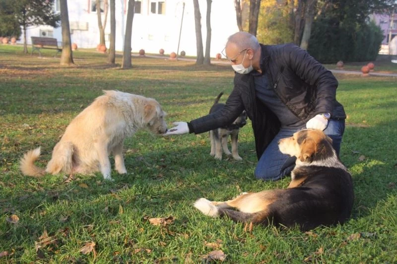 Sakarya İl Emniyet Müdürü Fatih Kaya, sokağa çıkma kısıtlaması nedeniyle yiyecek bulmakta zorlanan kuşları ve diğer sokak hayvanlarını elleriyle besledi.