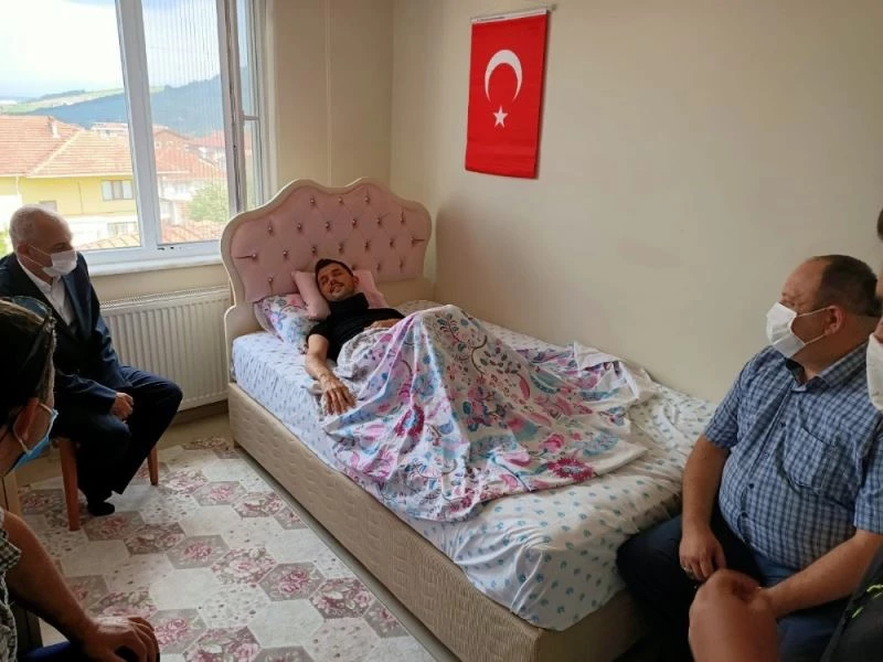 DÜZCE(İHA) – Düzce İl Emniyet Müdürü Mehmet Ali Akkaplan, Siirt’in Pervari ilçesinde operasyona giden aracın kaza yapması sonucu yaralanan Düzce’nin Gümüşova ilçesinde ikamet eden Jandarma Uzman Çavuş Şuayip Gönül’e geçmiş olsun ziyareti gerçekleştirdi.