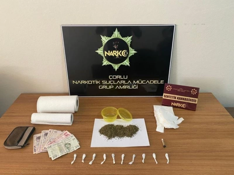 Çorlu ilçesi Kemalettin Mahallesi’nde tespit edilen bir ikamette yapılan aramada, çok miktarda bonzai, uyuşturucu madde satışından elde edildiği değerlendirilen 155 TL, uyuşturucu madde fişeklemesinde kullanılan kesilmiş peçeteler ele geçirildi. Konuya ilişkin, R.A. ve A.İ.Ö. gözaltına alındı.