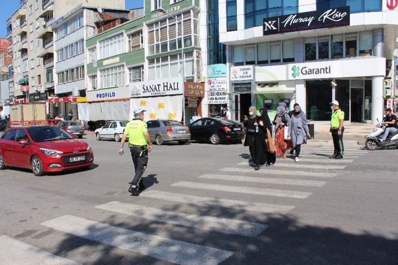 Gün boyu yapılan uygulamada, yaya geçidinden geçmek isteyen vatandaşlara, İlçe Emniyet Müdürlüğü ekipleri yardımcı olarak yaya geçidi üzerinden kontrollü bir şekilde geçmelerini sağladı.