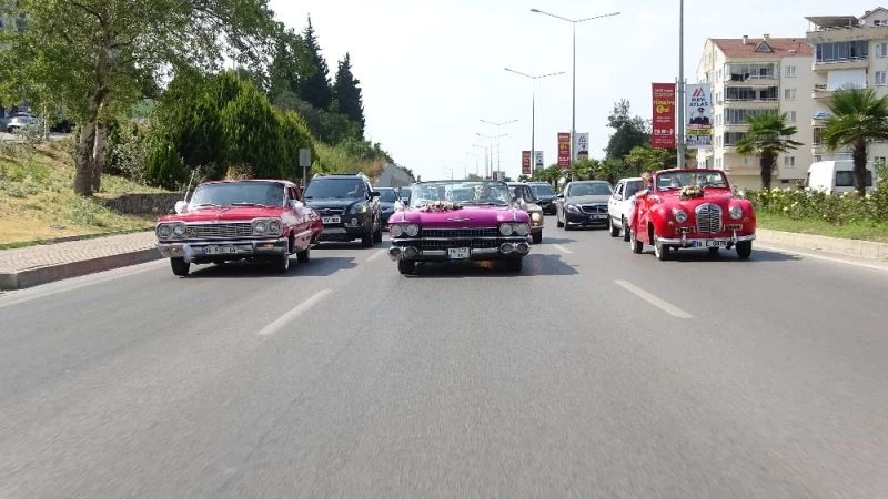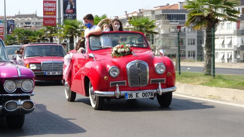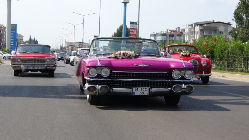 Bursa’da klasik otomobil tutkunu genç, düğününde öyle bir gelin alayı yaptı ki, görenler gözlerini ayıramadı.