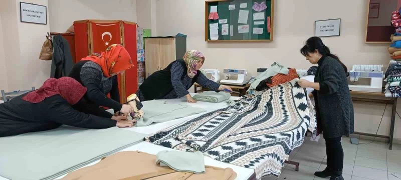 DÜZCE – Büyük yıkımlara sebep olan 12 Kasım 1999 depremini yaşayan Düzce, depremzedeler için adeta tek yürek oldu. Kentte bir yandan yardım kampanyaları sürerken, diğer yandan Halk Eğitim Merkezi’ndeki eğitmen ve kursiyerler depremzedeler için pijama, eşofman takımı, şal, atkı ve bere hazırlıyor.