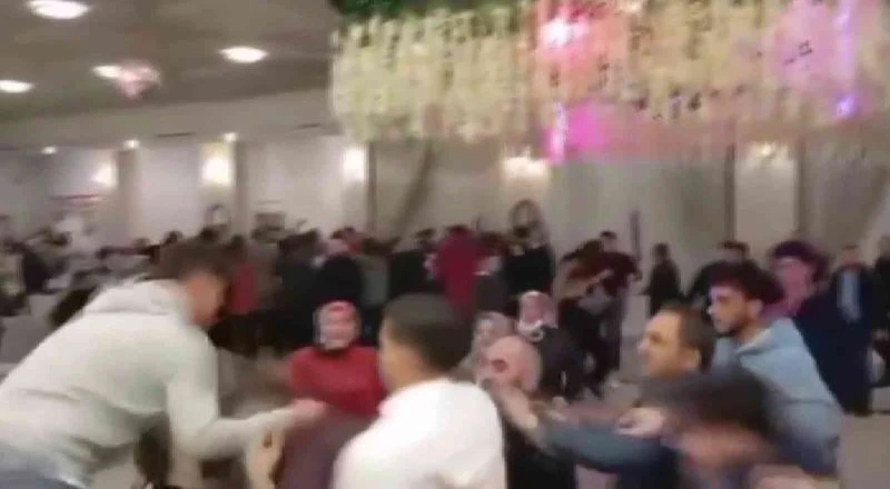 Öte yandan düğünde yaşanan kavga, vatandaşlar tarafından cep telefonu kamerasıyla saniye saniye kaydedildi. Cep telefonuna yansıyan görüntülerde, düğün salonu içerisinde çıkan kavgayı vatandaşların ayırmaya çalışması ve tartışma sebebiyle çıkan kavgada tarafların birbirlerine vurması yer alıyor.