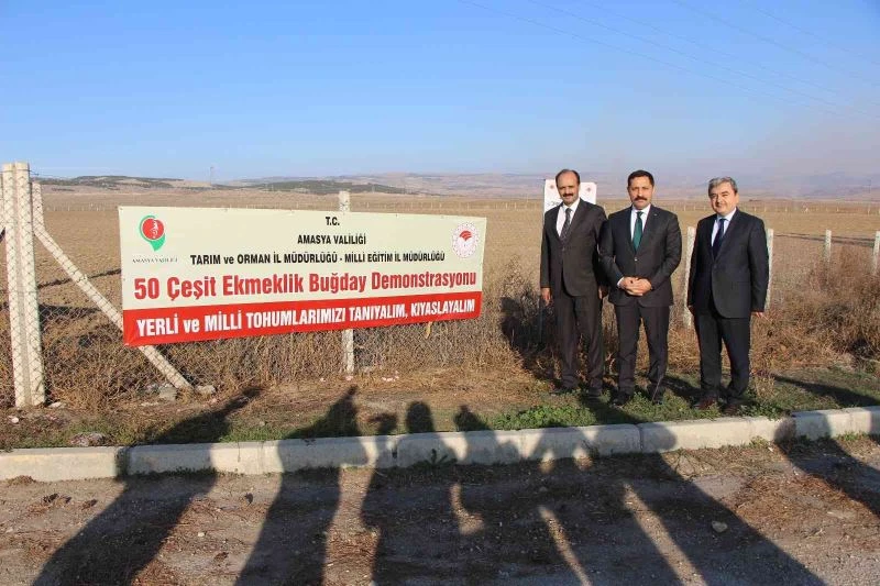 50 çeşit yerli ve milli buğday tohumunun toprakla buluştuğunu anlatan Mustafa Masatlı, “Aynı şekilde sulanıp, gübrelenip ilaçlanarak en sonunda hasat döneminde birim alandan en yüksek verimin, kalitelinin elde edildiği buğday seçilerek sertifika edilecek. Bizim topraklarımızı büyütmemiz mümkün değil. Ama birim alandaki en yüksek verimli, en kaliteli ürünü tespit ederek Amasya sınırları içerisinde gerek kamusal gerek özel sektöre bu türü önermiş olacağız” diye konuştu.