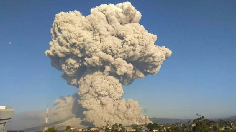 Endonezya’nın Sumatra Adası’ndaki Sinabung Yanardağı faaliyete geçti. Volkanoloji ve Jeolojik Afet Azaltma Merkezi tarafından yapılan açıklamada, yanardağda patlama meydana geldiği bildirildi. Yanardağın geçtiğimiz yılın Ağustos ayından bu yana ilk büyük patlamayı kaydettiği, gökyüzüne 5 kilometreye kadar kül ve duman püskürttüğü belirtildi. Yaşanan olayla ilgili can kaybı bildirilmezken, sosyal medyada paylaşılan görüntülerde yanardağdan yükselen dumanın gökyüzünü kapladığı görüldü.