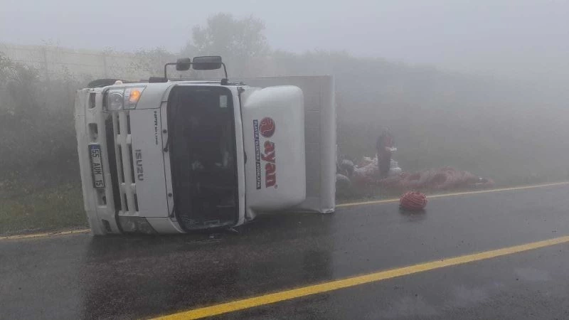 Edinilen bilgiye göre, sürücüsü öğrenilemeyen 55 AUM 15 plakalı enerji nakil hattı yüklü kamyon, Kastamonu-Bozkurt karayolu Isırganlık Mevkiinde yoğun sis ve yağışında etkili olması nedeniyle sürücüsünün direksiyon hakimiyetini kaybetmesi sonucu yoldan çıkarak şarampolde devrildi. Kazada kamyon sürücüsü yaralandı. Yaralanan sürücü, olay yerine çağrılan 112 Acil Sağlık ekiplerince Devrekani Devlet Hastanesine kaldırılarak tedavi altına alındı.