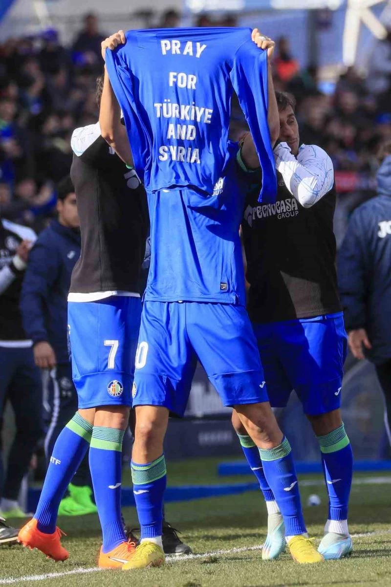 İspanya ekibi Getafe’de forma giyen mili oyuncu Enes Ünal, attığı golün ardından depremzedeleri unutmadı ve Türkiye ve Suriye için dua edin yazılı tişörtü tribünlere gösterdi.