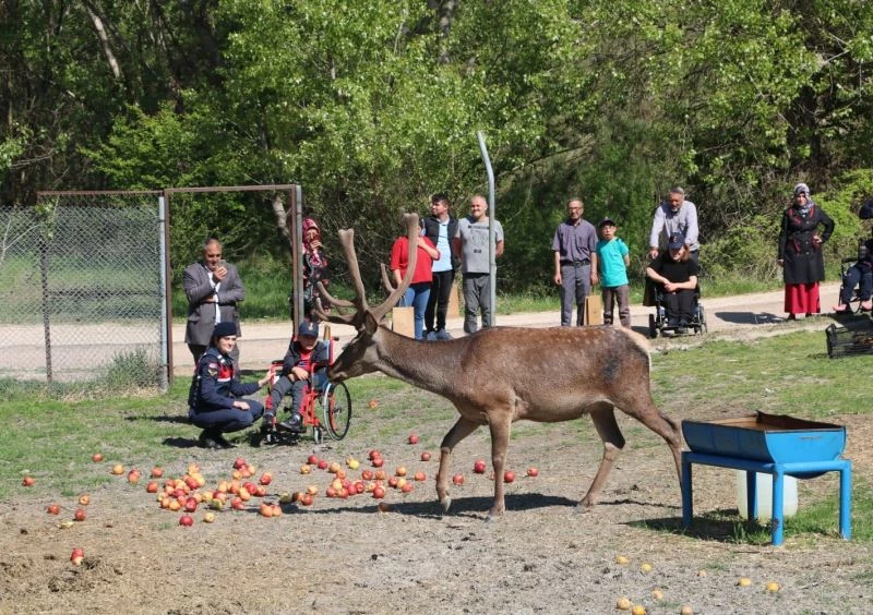 Engelli bireyler geyikleri besleyip ’Füme’ ve Garip’ ile eğlendi